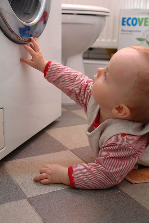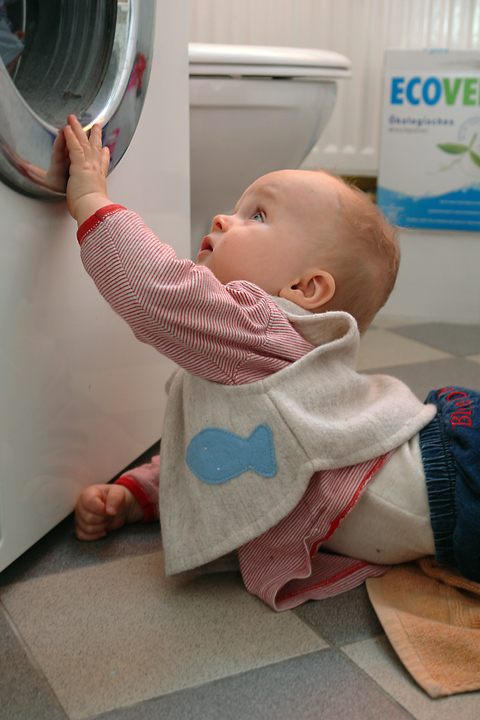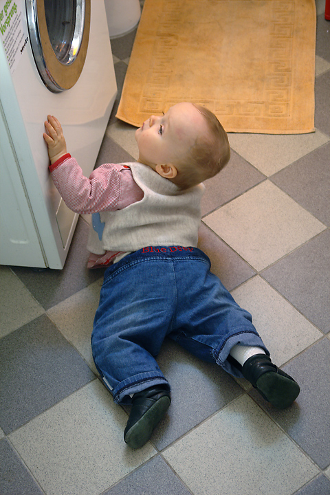 H. untersucht die Waschmaschiene...